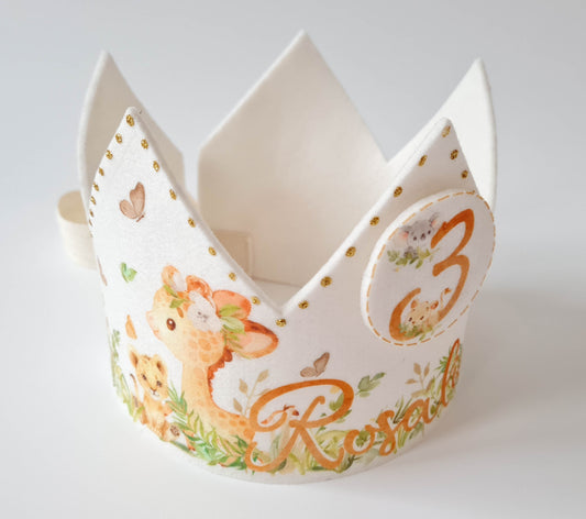 Geburtstagskrone Giraffe Zebra Junge Mädchen Name & Zahlen