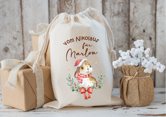 Weihnachtssäckchen Nikolausbeutel Hase mit Namen
