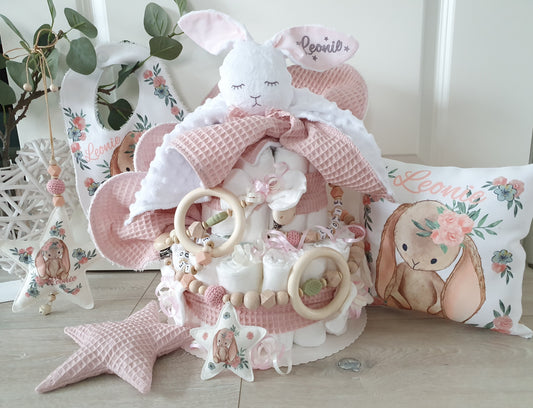 Windeltorte XXL Mädchen Kuscheltier Hase Hoppi