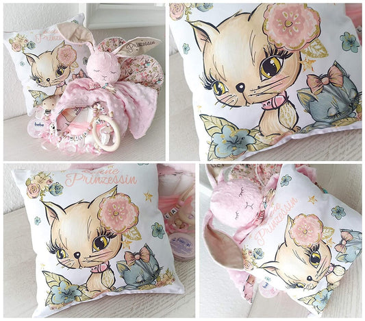 Windeltorte Hase Hoppi & Kuschelkissen Katze Mädchen