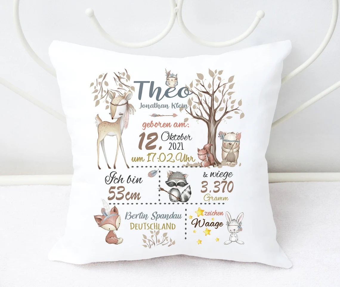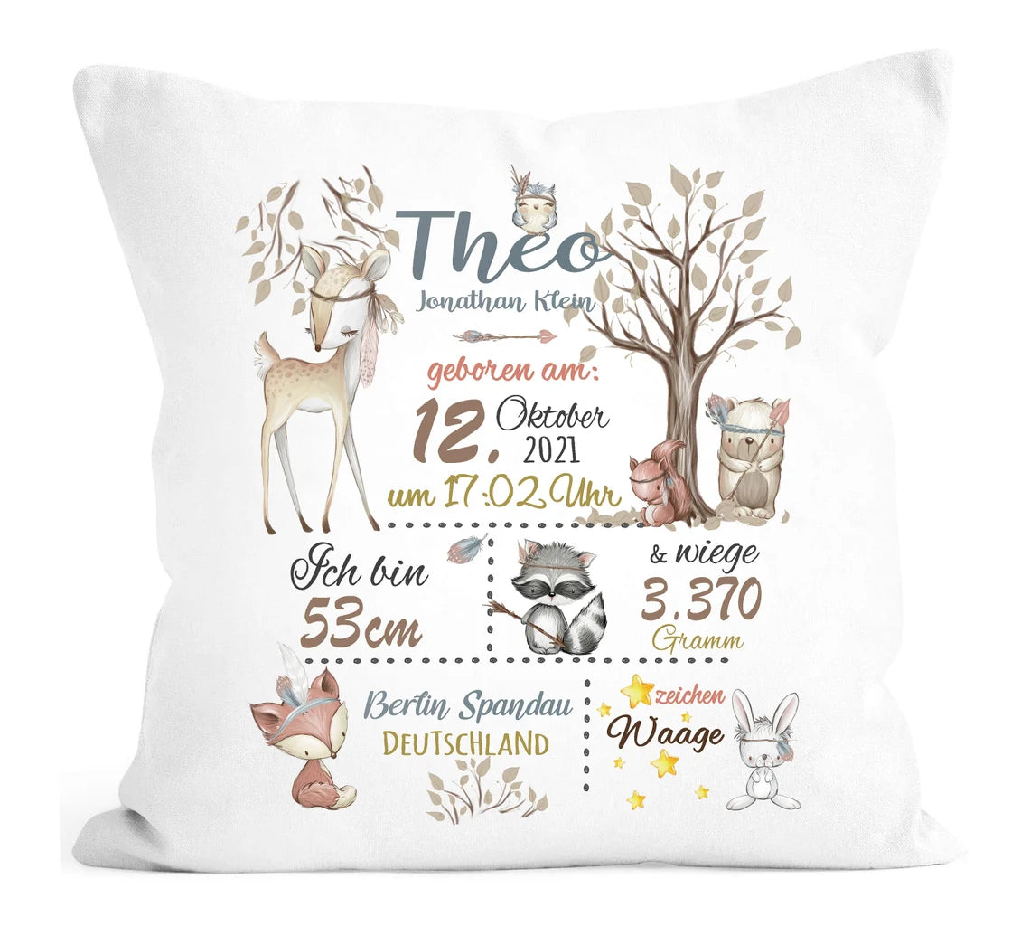 Kissen Waldtiere Boho - Personalisiert - mit Füllung